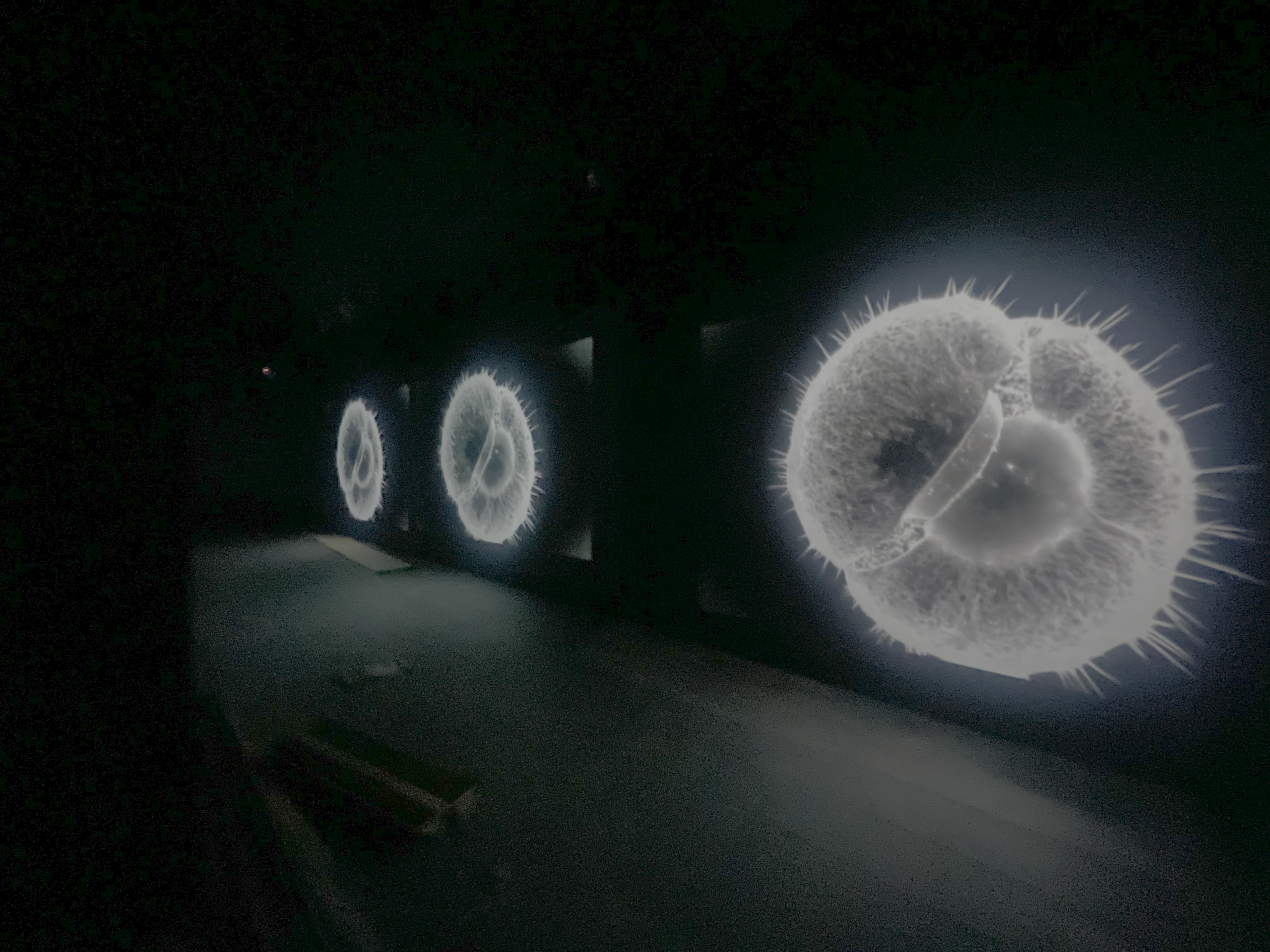 Asombro is an audiovisual installation that explores the thresholds between living systems and artificial ones. Images, texts, and sounds unfold across five screens and an immersive sonic space, evoking a form of life in a state of awakening—a nascent consciousness faced with the perplexity of finding itself in the world.